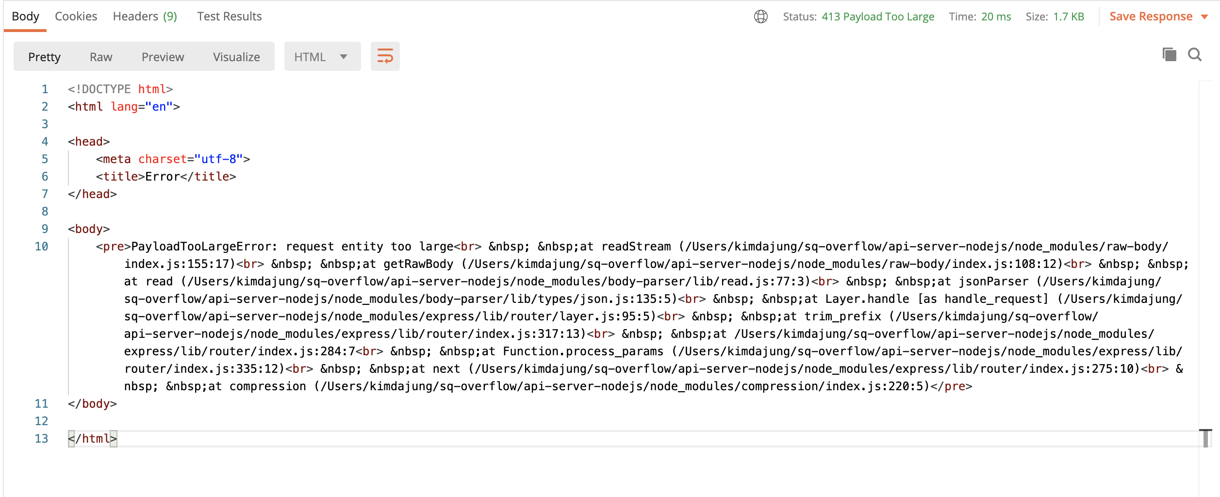body에 너무 큰 데이터를 넣은 것!