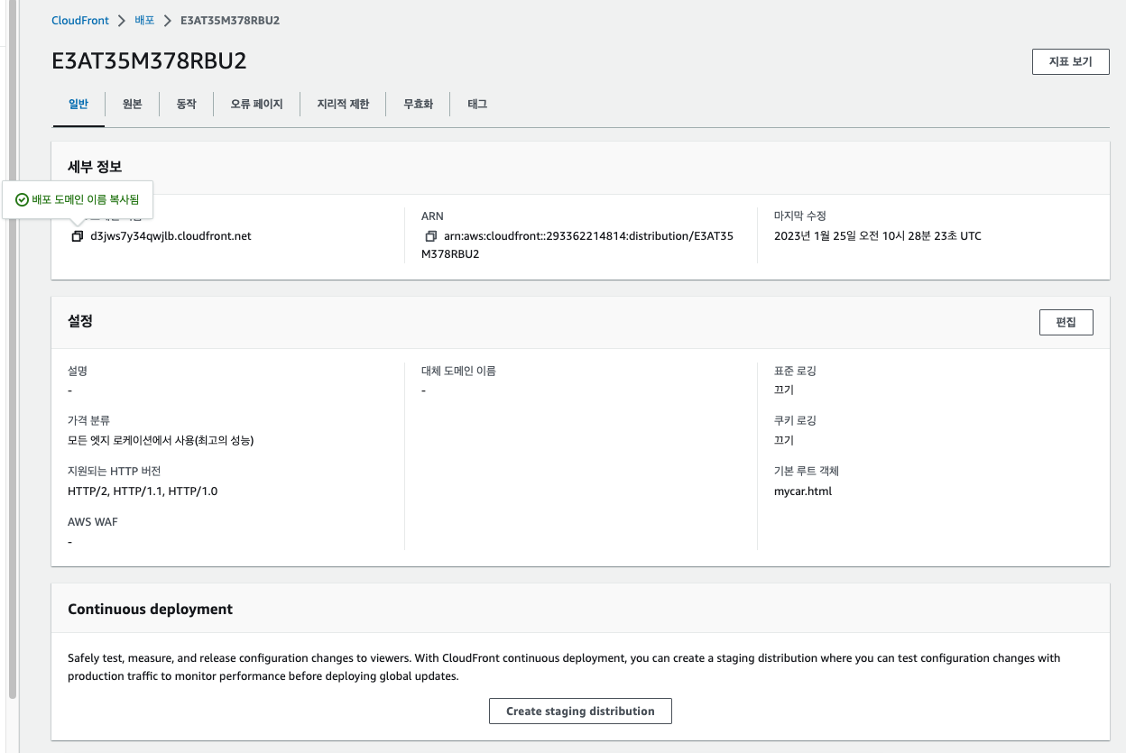 - 웹 브라우저에서 CloudFront Distribution 작동 확인