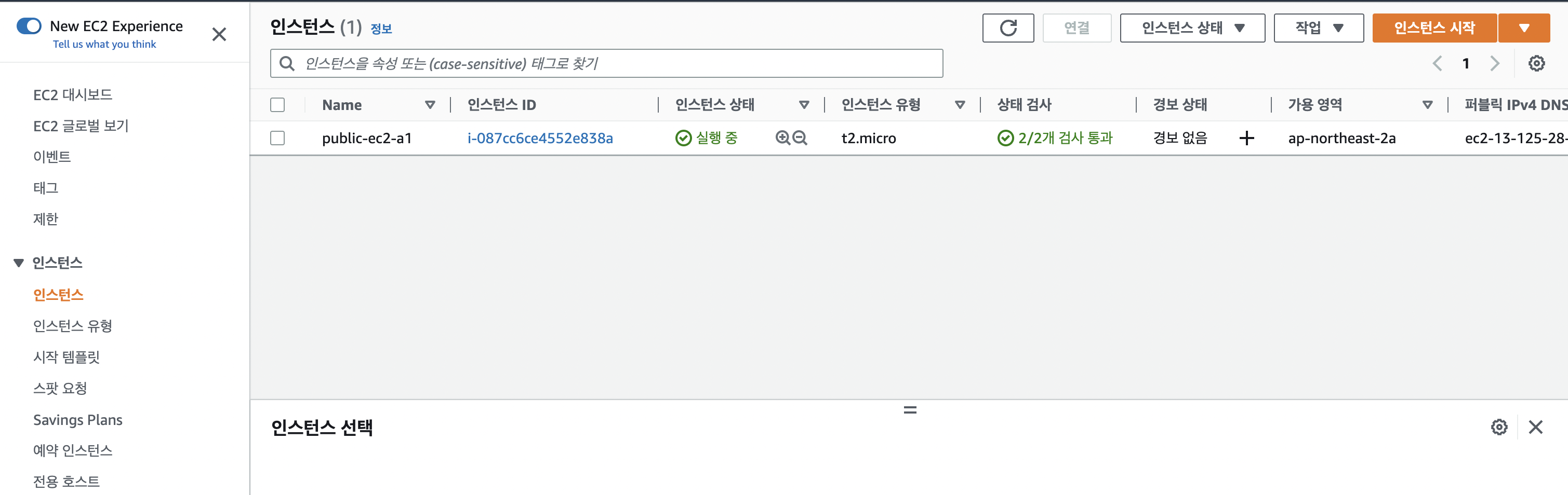 - LAMP가 설치되어 있고, index.php 파일이 생성되어 있는 인스턴스인 public-ec2-a1의 이미지로 만들어진 AMI를 선택하여 인스턴스를 생성하면 동일한 상태로 인스턴스가 생성되게 된다.
