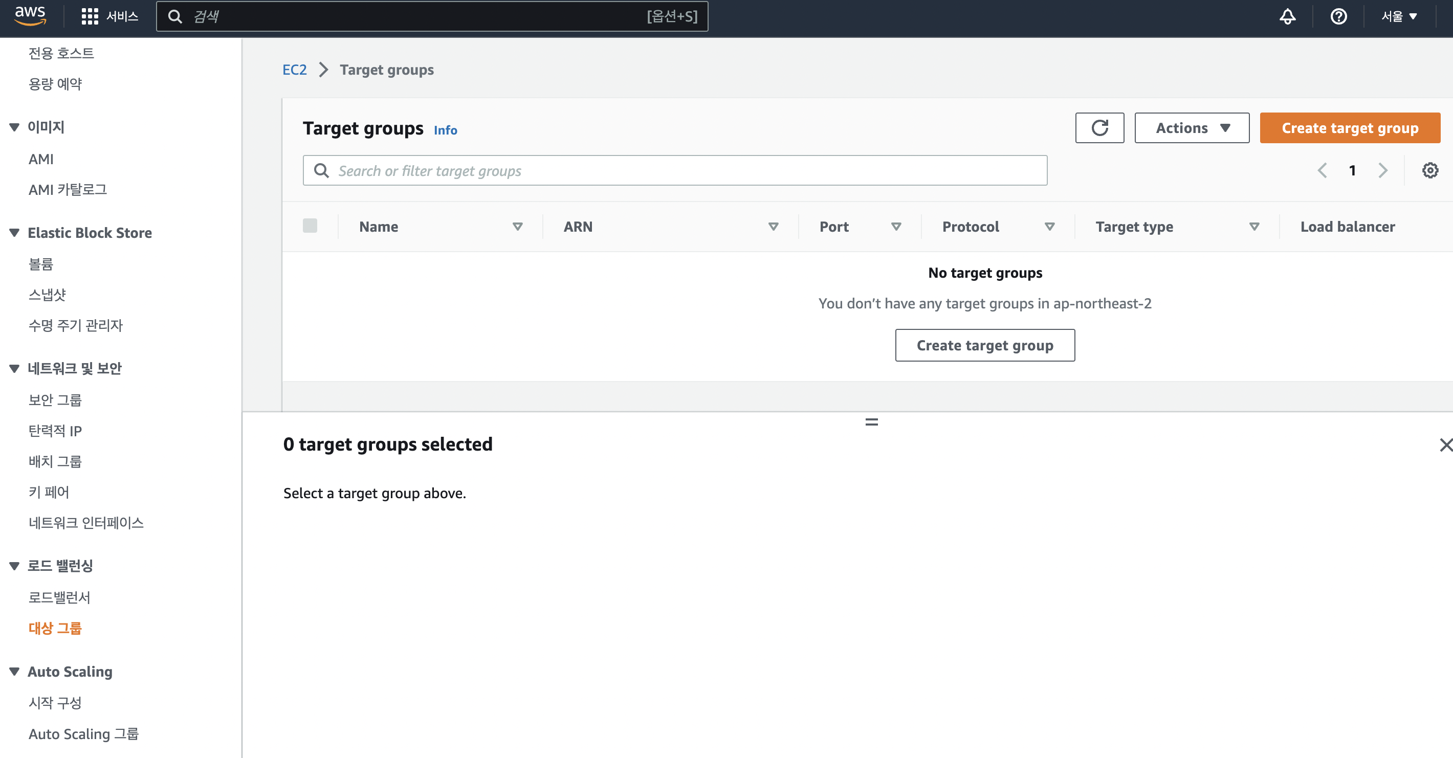 - 로드 밸런서는 기본적으로 트래픽을 받으면 리스너를 통해 타겟 그룹으로 전달하게 되는데 우선 로드 밸런서를 통해 들어온 트래픽을 받을 대상인 타겟 그룹을 먼저 생성한다.