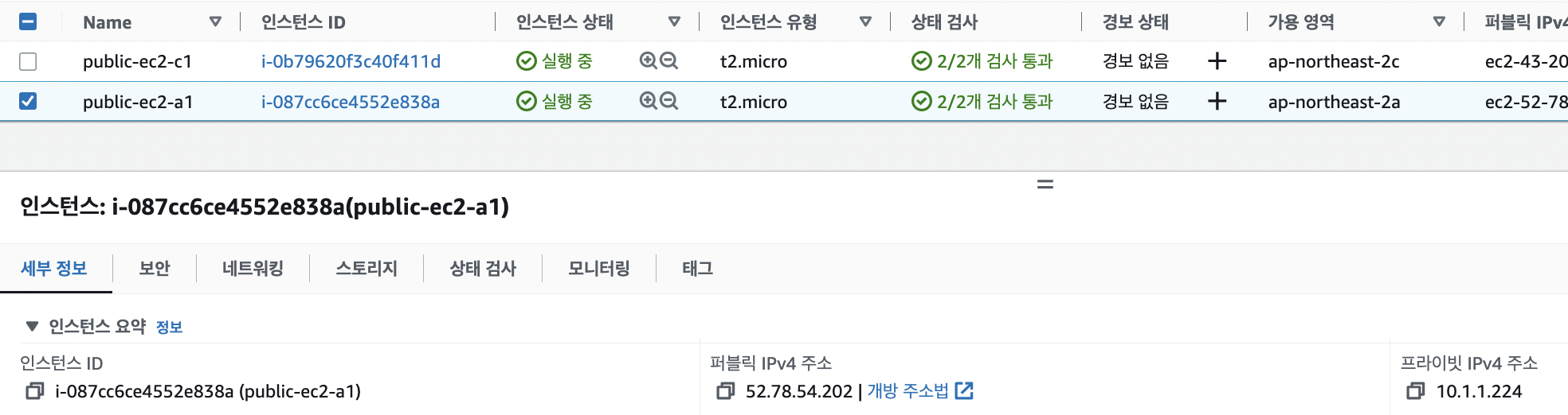 - 웹사이트에서 로드 밸런서의 DNS 네임을 열었을 때 private ip address를 보면 public-ec2-a1의 프라이빗 ip 주소와 같은 것을 볼 수 있다.