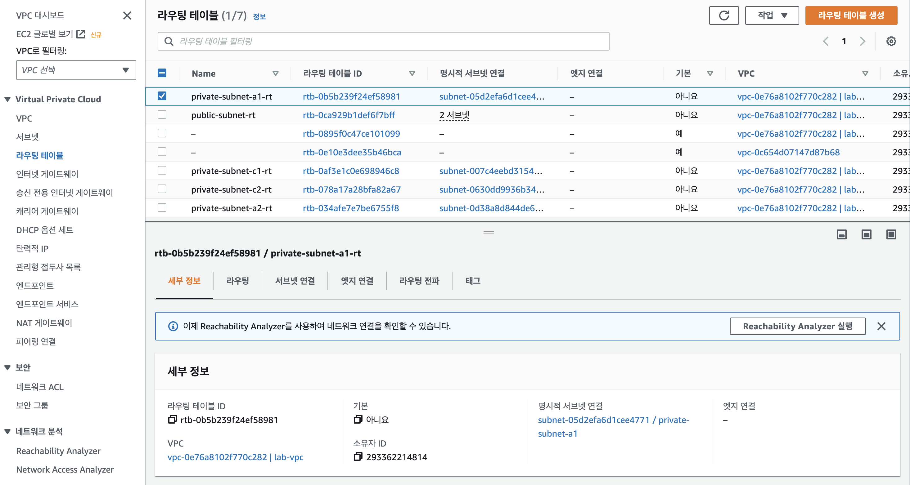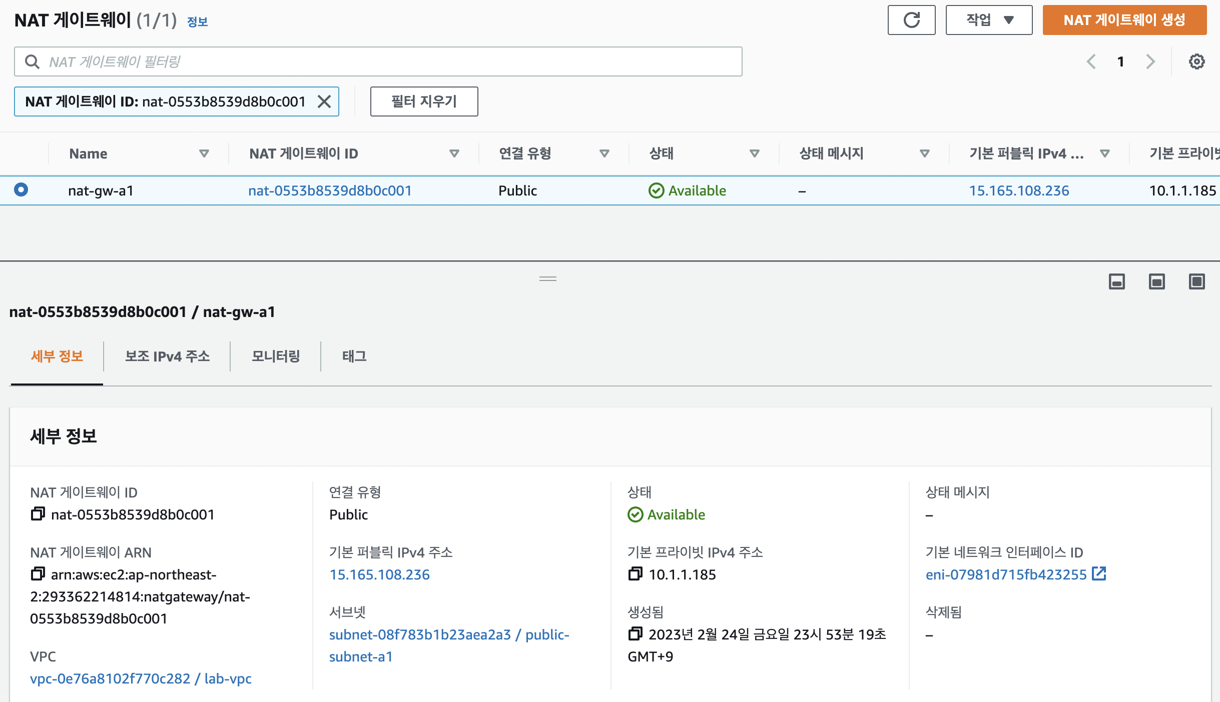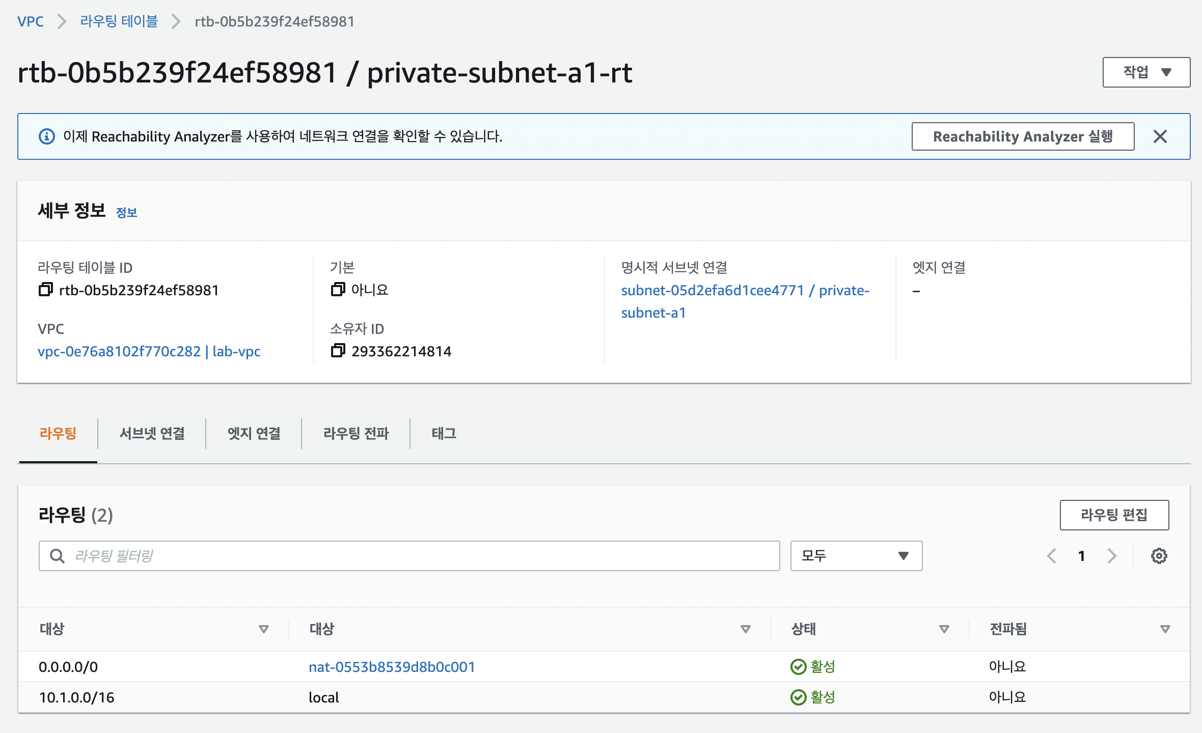 - private-subnet-a1이 현재 외부와 통신이 가능한 것을 확인할 수 있다.