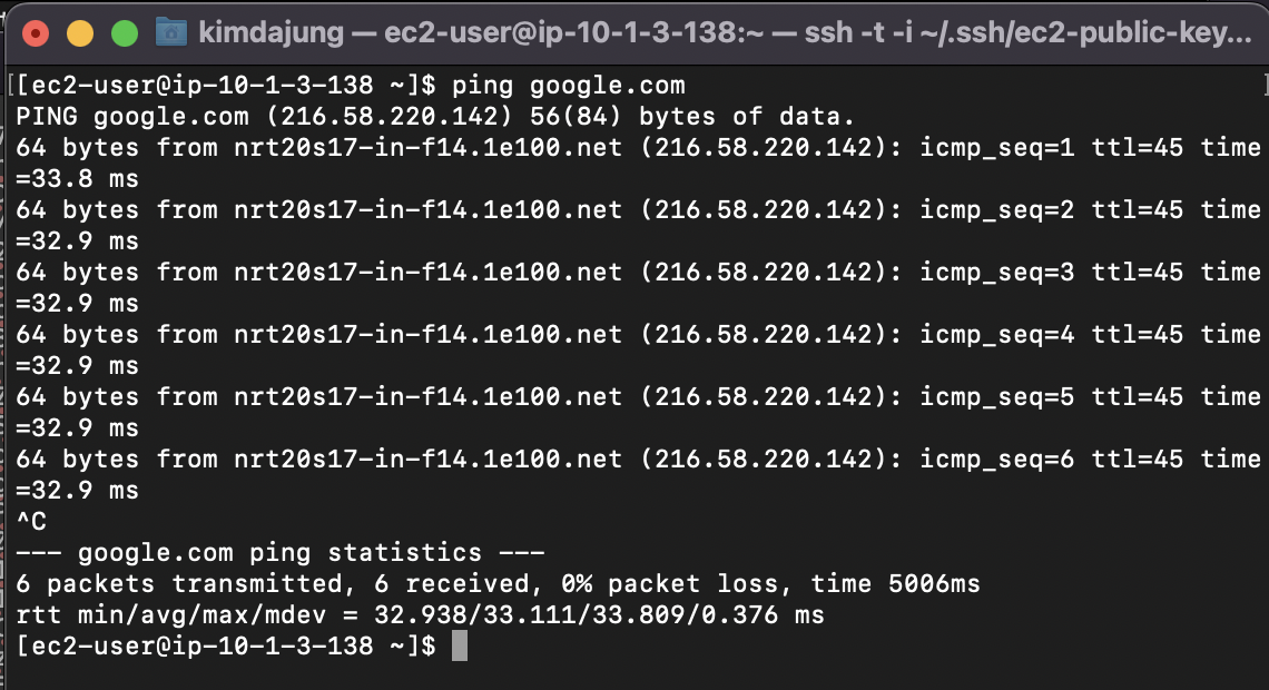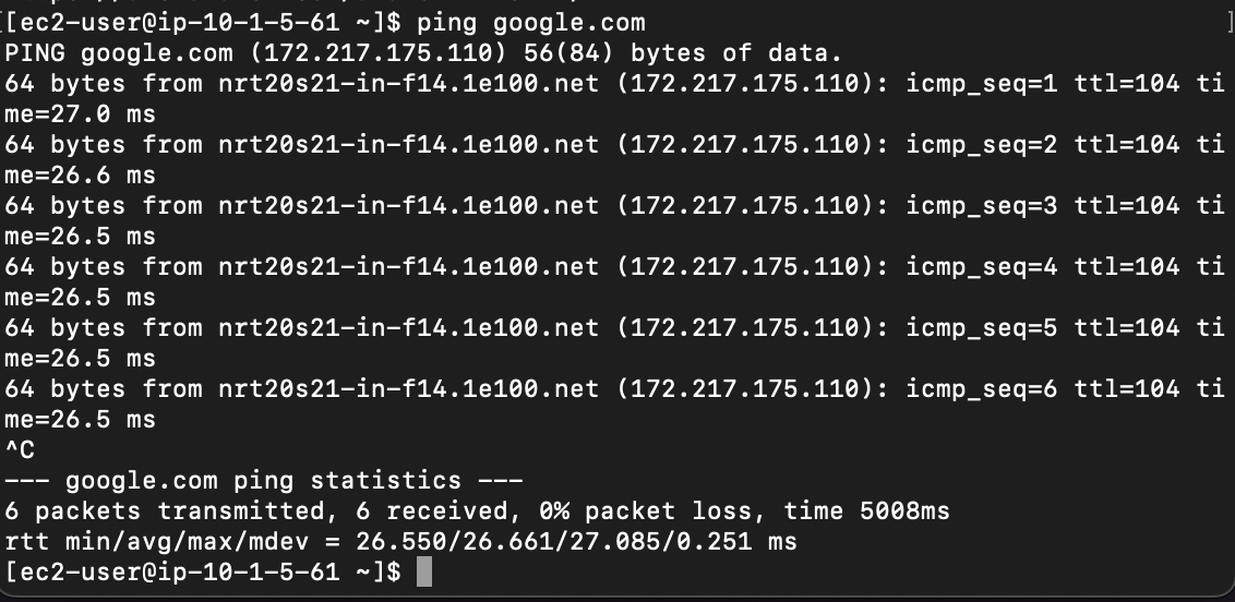 - private-ec2-c1도 NAT gateway를 통해서 외부와 통신이 잘 되고 있다.