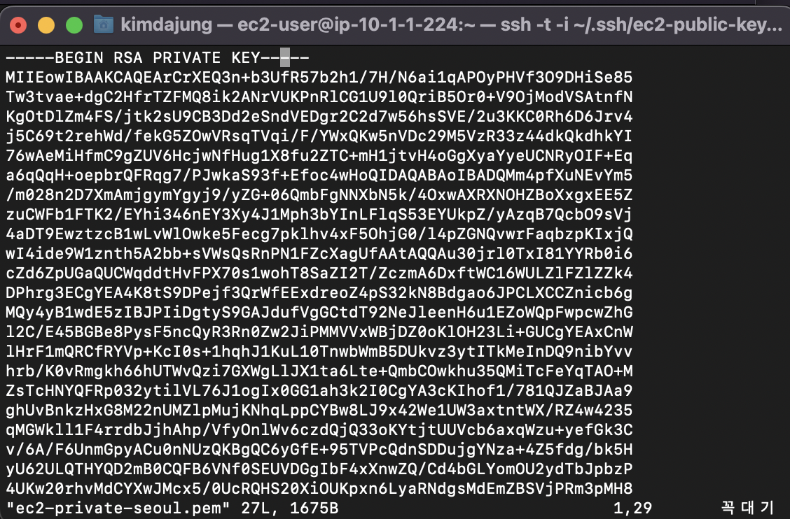 - public-ec2-a1에 ec2-private-seoul.pem키를 생성하기