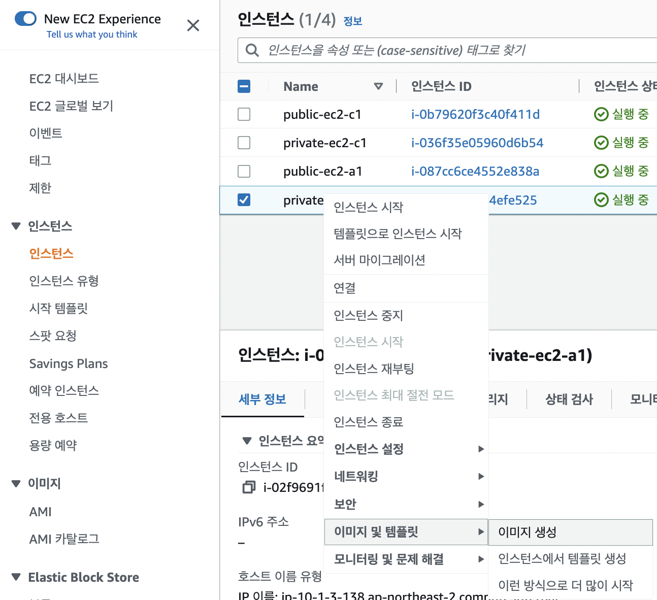 - private-ec2-a1의 Custom AMI를 생성해보자