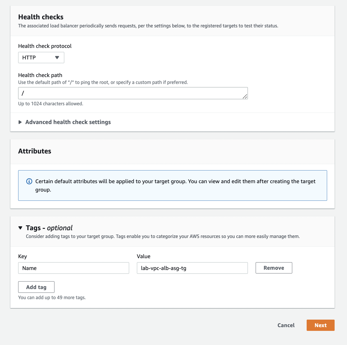 - 이 타겟 그룹은 Auto Scaling Group에 연결되는 Application Load Balancer에 연결되는 타겟 그룹이기 때문에 Auto Scaling을 통해 생성되는 인스턴스들이 이 타겟 그룹에 자동으로 연결이 된다.