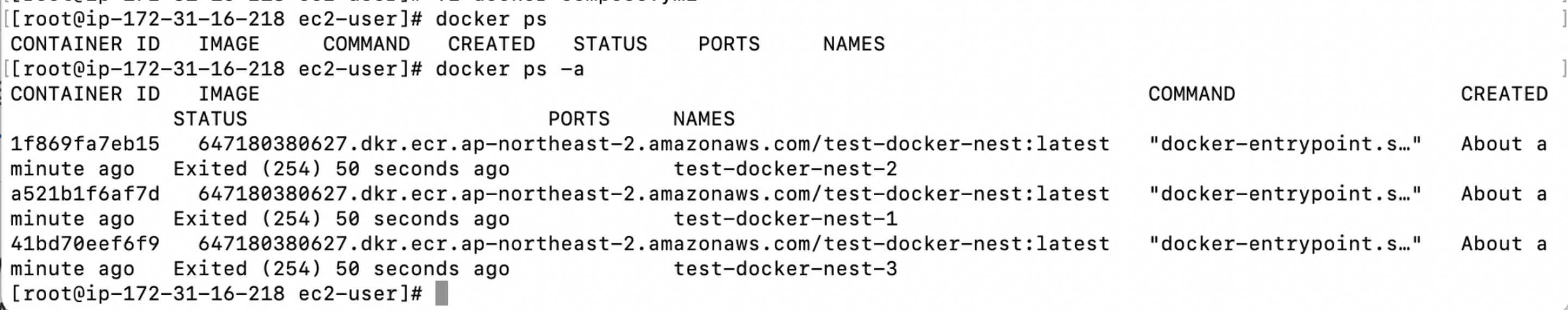 | Docker CI/CD 구성하여 자동배포중 발생한 오류 모음 (EC2, Github Action, NestJS, ECR) (0) | 2023.05.01 |