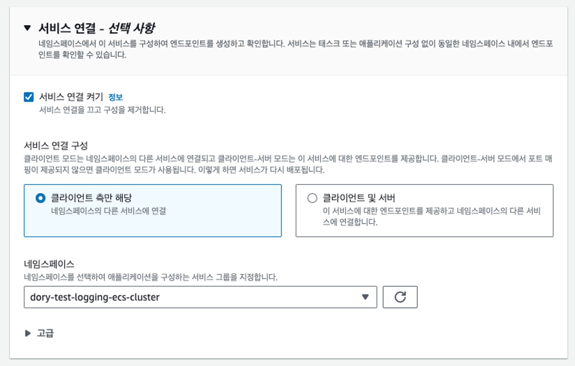 - Service Connect 를 사용하여 Loki 의 dns 로 내부 통신 (client)
