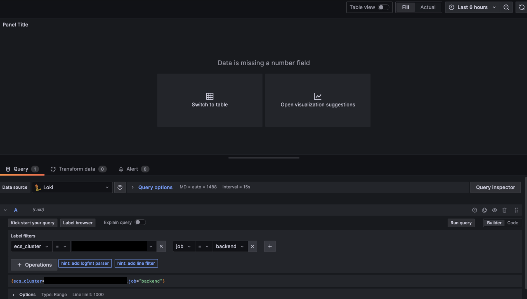 - failed to evaluate queries and expressions: [sse.readDataError] [A] got error: input data must be a wide series but got type long (input refid)