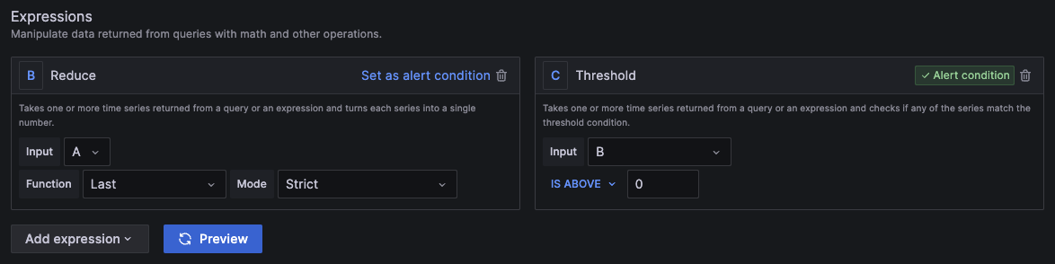 - 경보를 만들기 위한 대시보드는 wide series 만 가능하다.
