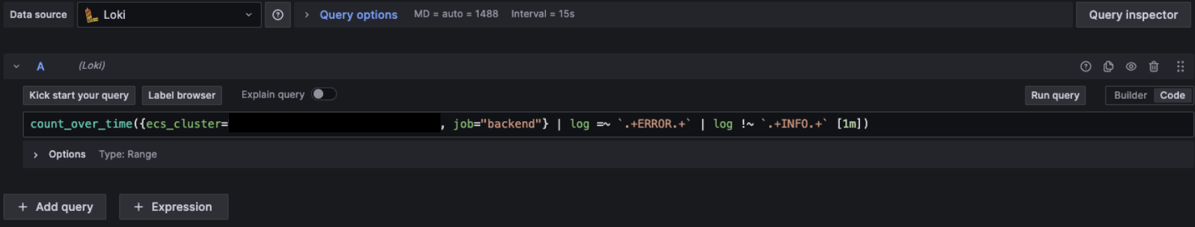 - Error 로그의 count 를 보여주는 Dashboard (Alert 만들기용)