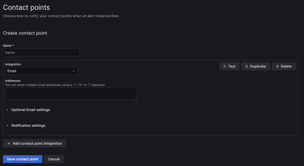 - default 경보는 default contact point 로 쏘게 설정