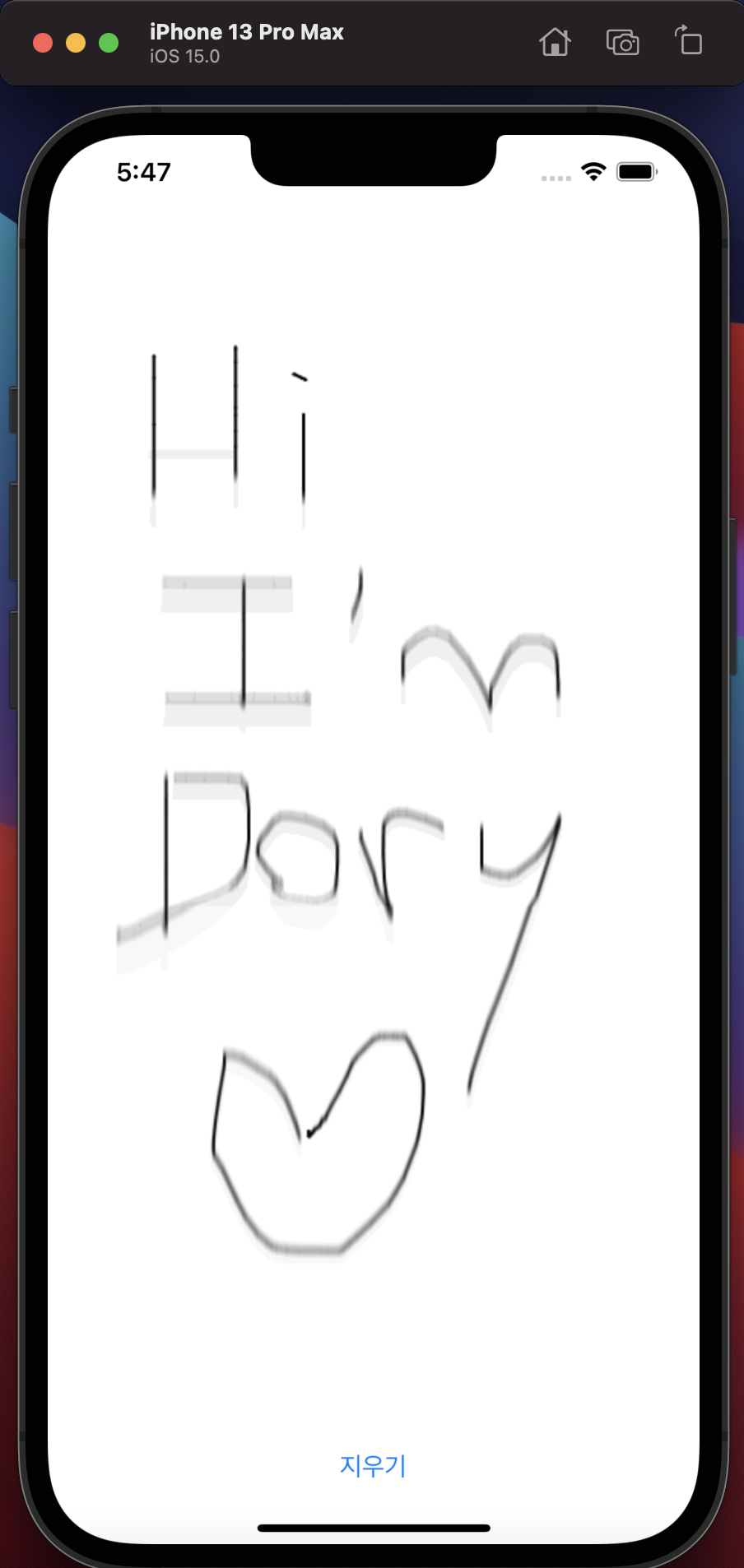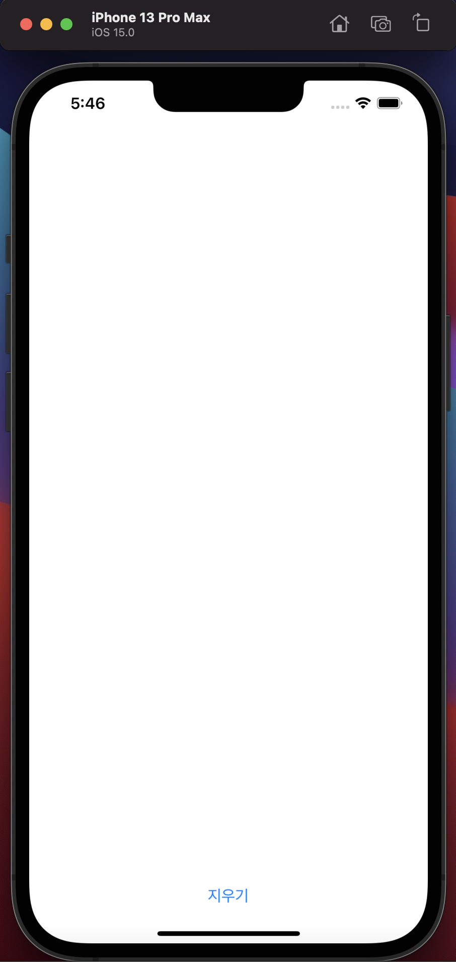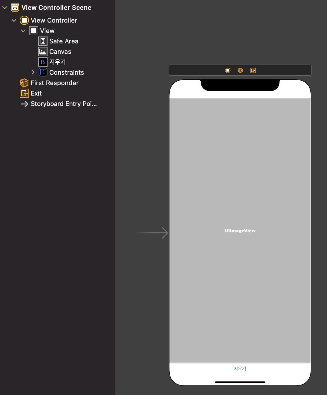 화면은 UIImageView를 상단에 위치시키고, 그 아래에 지우기 버튼을 위치시켜 구성하였다.