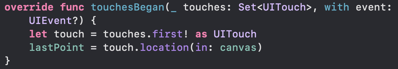 override func touchesBegan(_ touches: Set<UITouch>, with event: UIEvent?) {