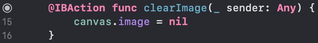 2) 스토리보드에 있는 지우기 버튼의 액션을 clearImage라는 메소드로 지정해주고,